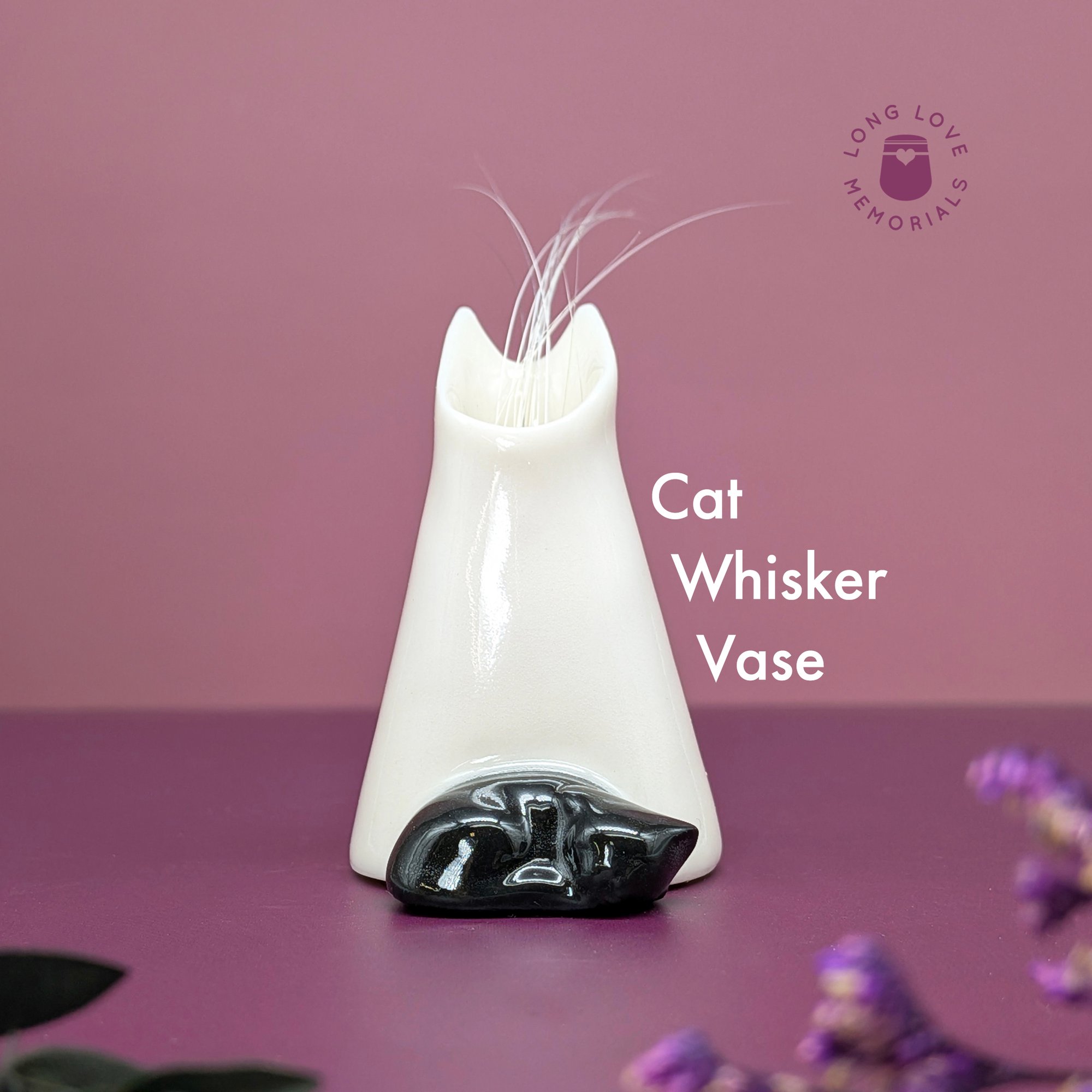 Keywords: cat whisker, cat whisker holder, whisker jar, whisker bank, whisker keeper, cat whisker collector, cat vase, whiskers, pet fur keepsake, cat figurine, black cat, ceramic cat, pet loss gift, new cat gift